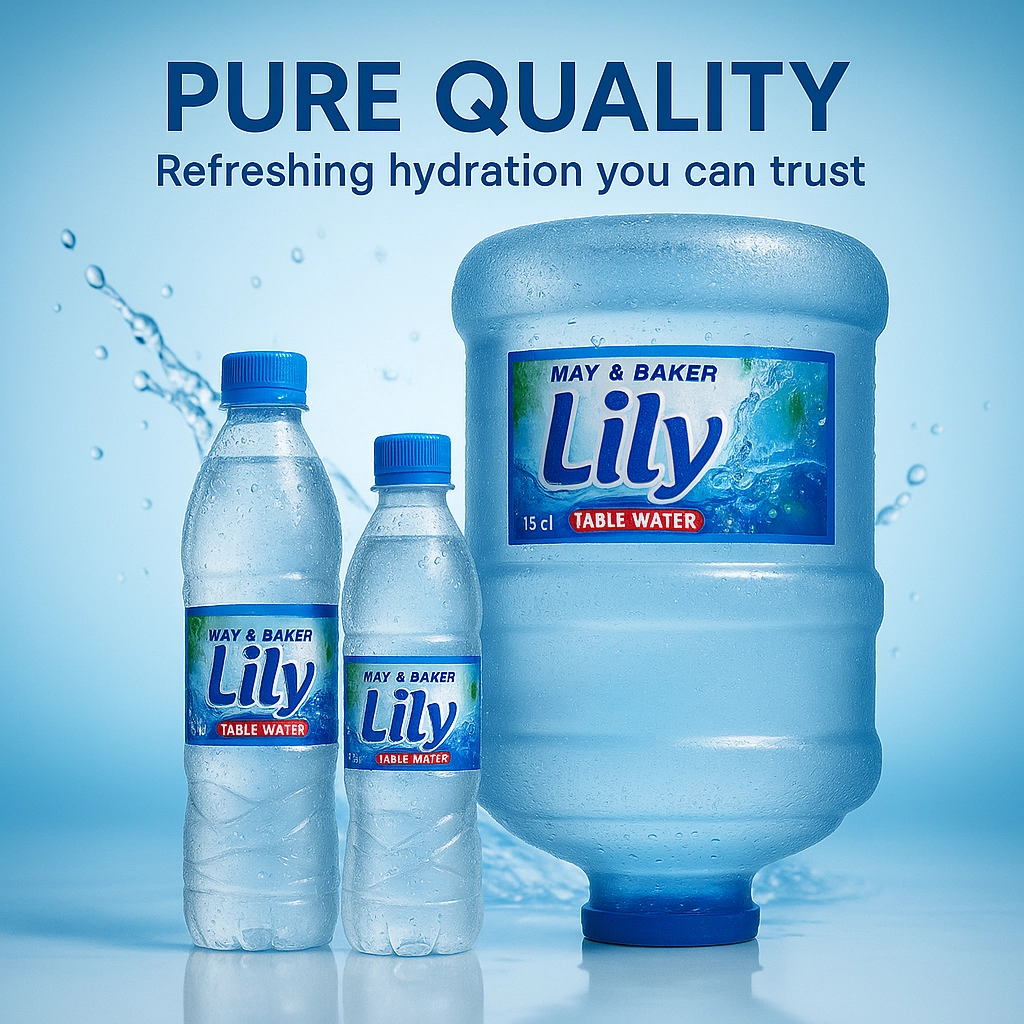 We provide a range of bottled-water options designed to meet everyday needs, including the 75cl Lily Table Water bottle, pack of 12 bottles for home and retail use, and the large 19-liter dispenser jar ideal for offices, receptions, salons, restaurants, and business premises. Every product is fresh, factory-sealed, clean, affordable, and delivered with hygiene and convenience in mind.